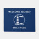 Votre nom de bateau personnalisé et votre salutation avec un phare nautique classique sur un tapis de porte personnalisé.