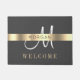 Paillasson Nom & Lg Monogramme, Message, gris foncé Or blanc
