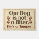 Notre chien n'est pas un biter. Il est un humper. Conception drôle de citation de chien. Chien humoristique indiquant pour des propriétaires de chien. En texte brun audacieux avec des empreintes de pattes.