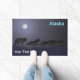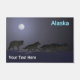Une nuit d'hiver froide, cruelle, illuminée par la lune. Un meute de loups affamé chasse pour rester en vie. Le texte "Alaska" apparaît également en bleu et blanc brillant. Ajoutez votre propre texte supplémentaire.