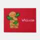 Tapis de fin d'année montré avec un arrière - plan rouge avec un joli pain d'épice homme d'accueil imprimé.