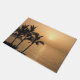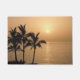 Silhouettes des palmiers contre un ciel de coucher du soleil.