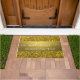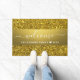 Paillasson de bienvenue avec une parties scintillant en or brillant. Personnalisez le matelas de parties scintillant d'or avec votre nom de famille et année établie.