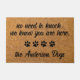Bienvenue aux invités avec ce drôle de tapis de portes ! "Pas besoin de frapper, nous savons que vous êtes ici." Les Chiens. Matelas de bienvenue - Manteau Empreinte de patte de sol de chien. Coeur rustique en imitation naturelle et design noir avec empreintes de pattes. DROIT D'AUTEUR © 2020 Judy Burrows, Black Dog Art - Tous droits réservés.