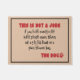 Pas une plaisanterie - la natte de chien. Ce n'est pas une plaisanterie - si vous voulez jamais revoir ces personnes, apportez-moi 5 livres. rôti de nervure dans un sac brun simple. A signé le chien.