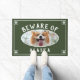 Drôle tapis de bienvenue en vert olive foncé et blanc avec empreintes de pattes personnalisés avec une photo de votre chien. Tapis de porte de famille de chien vert olive foncé et blanc personnalisé avec nom de chien et photo.