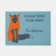 Ajoutez une touche de foxy à votre entrée avec ce tapis de portes personnalisé. Ce tapis de bienvenue présente une illustration d'un renard mélaniste. Ce renard rouge a des taches de fourrure de couleur foncée. Cette illustration de style dessinée à la main en gris orange et fusain représente un renard dont l'aberration de couleur de fourrure en fait un peu glacière que le renard moyen. L'illustration est visible contre un arrière - plan bleu clair. À côté du graphique se trouve le texte en couleur gris fusain qui est prêt pour votre touche personnalisée.