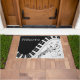 Clavier noir et blanc classique avec un flair incurvé. Des notes musicales rajoutées ajoutent un aspect festif.