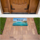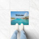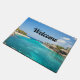 Un paillasson avec une belle photo représentant un complexe balnéaire tropical. Jolie plage de sable blanc et d'eau bleue avec des paillotes, ce qui lui donne une ambiance insulaire tranquille.