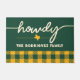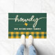 Offrez un grand Texas bienvenue à tous ceux qui viennent chez vous avec ce design. Le mot "howdy" s'écria dans une grande police manuscrite sur la forme d'état. Personnalisez avec votre nom de famille ou un message supplémentaire. Buffalo plaid combine les couleurs des écoles publiques avec le noir pour un look intemporel. Design disponible en orange brûlé, vert, rouge, violet, orange/marine, jaune, jaune/vert et marron. Fait un grand cadeau pour le ménage.