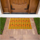 Ce tapis de portes présente un design moderne du milieu du siècle de rectangles et cercles reliés par des tentures murales.