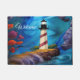 Beau phare rayé rouge et blanc sur une rocheuse surélevée entourée de fleurs et bleu eau/ciel IA Art créé par minx267