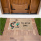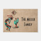 Personnalisez ce "One of a Kind" unique au sud-ouest de Kokopelli Doormat! Il présente un Kokopelli Sud-Ouest en Turquoise, Orange et Noir Jouant la Flûte et Dansant autour d'un Cactus Sous le Soleil...sur un Arrière - plan Tan !