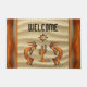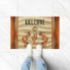 Personnalisez ce "One of a Kind" unique au sud-ouest de Kokopelli Doormat! Il comprend deux Kokopelli en cuivre jouant la Flûte et dansant autour d'un cactus sous le soleil sur un Arrière - plan de sable...Entouré d'une bordure en cuivre!