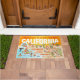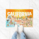 Une carte spectaculaire de la Californie du Sud - montrant Los Angeles, Anaheim, Long Beach, San Diego et beaucoup d'autres villes plus la plupart des plages. Cette illustration fantaisiste est pleine de plaisir : un surfeur pend dix fois tandis qu'une sirène fait des salons sur un rocher, qu'une baleine meurtrière saute de l'eau et qu'un taureau frappe dans un chasseur de taureaux, le tout sous le soleil chaud de Californie qui brille au-dessus de tout.