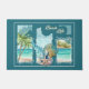 Le beau tapis coloré "Beach Life" représente des scènes de plage, des palmiers et des coquillages avec un arrière - plan turquoise. Une façon unique et agréable de vous accueillir (ou de vous accueillir) chez vous !