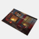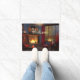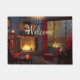 Un coin lecture confortable par jour pluvieux d'automne. Autour du foyer, un feu éclatant, des fauteuils rouges moelleux, des piles de livres, des teacakes et une théière complètent le confort. À l'extérieur, un saule jaune et une haie d'érable et de hêtre rouges sont obscurcis par la pluie qui s'enflamme, qui asperge la fenêtre où un chat gingembre s'assoit en regardant dehors.