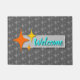 Accueil Aqua avec étoiles rétro orange et jaune sur un arrière - plan motif étoilé gris.