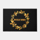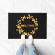 Mat de bienvenue d'automne noir avec couronne de feuille d'or
