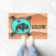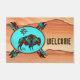 Personnalisez ce tapis de porte unique "Un d'un genre" Buffalo sud-ouest! Il présente un Buffalo sud-ouest sous le soleil sur un Arrière - plan turquoise, entouré d'une frontière sud-ouest en Flammes Turquoise, Orange et Noir...sur un Arrière - plan du désert ! C'est une création artistique originale de l'artiste Kerry Miller.