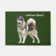 Porte Mat avec dessin et texte de chien coquis - Welcome Home= Facile à changer de couleur arrière - plan et ajouter votre propre texte.