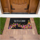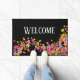 Tapis de porte avec une couleur arrière - plan noire et une impression florale estivale.