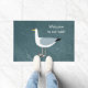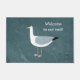 Une mouette coquine debout au bord de l'océan. Parfait pour ceux qui sont inséparables et la côte. Texte : Bienvenue dans Notre nid, mais peut être customisé ou supprimé.