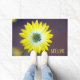 Ce tapis de portes personnalisé pour l'entrée de la maison ou du bureau présente une image de gros plan d'une fleur jaune d'Osteopermum, un type de marguerite africaine. "Bienvenue" est ajouté en gros caractères faciles à lire. Le tapis mesure 24" x 36" et a un front lisse et un dossier en latex antidérapant. Il a également un bord renforcé pour résister à la friture, est à la fois résistant à la décoloration et à la moisissure, et se nettoie facilement avec un jet d'eau. Idéal pour les entrées couvertes comme les porches, appartements, bureaux, condos, etc. N'hésitez pas à me contacter par Zazzle si vous avez des questions sur ce tapis ou souhaitez aider à transférer cette conception à un autre article. Je suis heureux d'aider à m'assurer que le design s'adapte correctement.