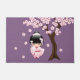 Illustration vectorielle d'une mignonne fille orientale en robe kimono rose/blanc clair avec un sous-vêtement rouge foncé. Les cheveux noirs de la fille sont décorés de fleurs et de épingles à cheveux de style geisha. Cette oeuvre a été inspirée par les poupées kokeshi traditionnelles du Japon et influencée par le style art Chibi Kawaii japonais. Le cerisier Sakura en fleurs fait un simple arrière - plan.