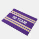 Ce tapis de porte pourpre audacieux, comportant les rayures colorées par or, ajoute un bruit de couleur. Personnaliser avec votre nom ou message.
