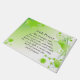 Le tapis de prière irlandais représente un arrière - plan de coeurs verts et de shamrocks. Il comporte une Prière irlandaise inspirante, "Que Dieu vous donne, Pour chaque larme, un sourire, Pour chaque soin, une promesse, Et une bénédiction dans chaque procès, Pour chaque soupir, une chanson douce, Et une réponse pour chaque prière."
