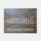 Le cadeau à la maison rustique mignon de décor pour des rvers, des voyageurs retirés, des randonneurs, des campeurs, et des amants de nature est cette natte en bois personnalisée de regard qui indiquent des profondément satisfaits avec un modèle pour ajouter le nom de famille ci-dessous dans les lettres blanches. Contre une photo d'arrière - plan du bois rustique et affligé qui est marqué et vieux. Grand cadeau de retraite, aussi. Soyez droit à la maison devant un rv ou un cabine de rondin confortable.