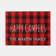 Le cadeau à la maison rustique de décor de plaid rouge à la mode, mais classique pour des rvers, des voyageurs retirés, des campeurs, et des amants de nature est cette natte personnalisée qui indiquent des profondément satisfaits avec un modèle pour ajouter le nom de famille ci-dessous dans les lettres blanches. Sur un fond populaire de motif noir et rouge, confortable de plaid de buffle ou de plaid ou de contrôles également appelés de bûcheron. Cadeau unique de retraite, aussi. Soyez droit à la maison devant un rv ou un cabine de rondin confortable. Soyez parfait pour la saison des vacances d'hiver.