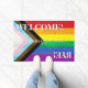 Ce tapis de bienvenue est orné d'un magnifique drapeau arc-en-ciel Progress Pride LGBT avec un arrière - plan de photographie de plage. Le drapeau arc-en-ciel est un symbole de la fierté LGBT et ce tapis de porte est une excellente façon de montrer votre soutien à la communauté.