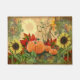 Citrouilles dans un jardin avec tournesols et feuilles.