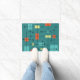 Ce design moderne d'inspiration atomique du milieu du siècle présente des lignes audacieuses et des formes géométriques turquoises, turquoise, jaune et orange.