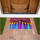 "Bonne Hanoukka." Décorez votre entrée en "style" avec ce tapis de bienvenue personnalisé unique et amusant! Une illustration ludique, moderne et artistique de bougies motifs de saumons dans une menorah vous aide à inaugurer les vacances de Hanoukka. Des bougies bleues assorties de motifs de fausse feuille colorés et de flammes de fausse feuille d'or recouvrent un arrière - plan texturé rouge vif et riche. Changez le message d'accueil si vous désirez en faire une autre copie ou votre nom. Cartes de correspondance, autocollants, ornements, tasses, produits de la boisson, coussins, décoration de maison, et plus encore sont également disponibles. Quelle façon divertissante de célébrer cette saison festive et d'accueillir tous ceux qui entrent dans votre demeure ! En utilisant les modèles faciles à utiliser, changez le message d'accueil à votre nom ou autre copie, et vous pouvez personnaliser ce tapis Hanoukka sans effort. S'il vous plaît, envoyez-moi un message avec toute question ou demande.