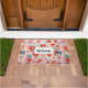 Un tapis de bienvenue avec un motif de style média mixte amusant. De grands coeurs rouges et diverses formes aléatoires dispersés autour en faisant un motif délicieusement mignon.