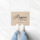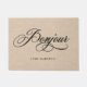 Cette natte rustique et élégante française indique le "bonjour" dans la calligraphie tourbillonnante et noire sur un arrière - plan neutre et bronzage de regard de papier d'emballage, et a une tache pour votre nom de famille.