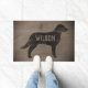 Shabby Chic Chesapeake Bay Retriever Silhouette Style Rustique Mat De Bienvenue. Ce mignon matelas peut être personnalisé avec votre nom de famille ou votre slogan. Faux design en bois patiné. Fait un cadeau amusant pour les nouveaux propriétaires de maison, les jeunes mariés, les papas de chien, les mamans de chien et toute personne qui aime leurs animaux de compagnie comme la famille. Visitez le Doodle World de Jenn pour encore plus de portières pour chiens de races et la décoration de la maison des amoureux de Chessie.