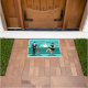 Chaque heure est l'heure heureuse avec ce Retro Cocktail Lounge Porte Mat. Le design moderne du milieu du siècle présente un dessin animé minimaliste et animé de style années 1960 d'un bar à cocktails élégant. Sur fond de mur d'aqua, on peut voir des rangées de verres de boisson. Au moins, on peut voir les silhouettes turquoises des lunettes de boisson. A en juger par les formes de la tige, ce bar est bien équipé pour mouiller votre sifflet, quelle que soit votre préférence de boisson. Un barman des plus compétents et personnalisables est le bar turquoise aux accents jaunes. Le jeune bardonte porte une chemise blanche immaculée avec cravate arc noir. Son apparence fraîche, ses cheveux blonds et ses lunettes noires de hipster nous donnent toutes les raisons de croire qu'il passe ses journées en tant qu'acteur en difficulté ou en tant que super-héros. D'un côté, le beau mixologiste donne un martini à un client de l'autre côté du bar. Le client en attente est un gentleman à larges épaules en costume noir et cravate rouge. C'est le genre de gars qui est décrit comme grand, sombre et beau même quand il reste des heures jusqu'à la fermeture. Il semble y avoir un tabouret rouge et chrome avec le nom de M. Debonair dessus. Mais pour ne pas être présomptueux, il pose la question : "Pardonnez-moi. Est-ce que ce siège est pris ?" Il demande à la fille aux cheveux raven sur le tabouret du bar voisin. C'est une vraie "fille d'à côté", si vous vivez à côté d'une beauté impeccable avec un personnage qui ne démissionnera pas. Elle porte une robe noire et tient un martini d'une main. Elle espère qu'elle et l'homme approchant ont plus en commun que leur préférence pour la boisson et le choix de la couleur de l'armoire. On dirait que ce soir est devenu intéressant. Bravo !
