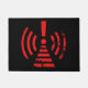 Striking retro-futuristic hazard icon with pulsing red lines and a distressed warning, old-school terminal screen vibes.