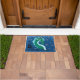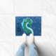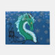 Portrait de profil de dragon bleu, vert et turquoise avec neige tombant tout autour. Rose tribal noir.