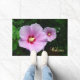 Ce tapis de portes personnalisé présente une image de belles et grandes fleurs d'hibiscus connues comme le Rose de Sharon. "Bienvenue" est ajouté en gros caractères faciles à lire. Le tapis mesure 24" x 36", et il a un front lisse et un dossier en latex antidérapant. Il a également un bord renforcé pour résister à la friture, est à la fois résistant à la mouche et à la moisissure, et se nettoie facilement avec un jet d'eau. Idéal pour les entrées couvertes comme les porches, appartements, bureaux, condos, etc. N'hésitez pas à me contacter par Zazzle si vous avez des questions sur ce tapis ou souhaitez aider à transférer cette conception à un autre article. Je suis heureux d'aider à assurer l'image et le lettrage correctement.