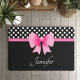 Paillasson Ruban rose Noir & Blanc Pois Nom