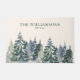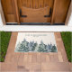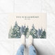 Cet élégant tapis de portes rustique présente une belle aquarelle moderne de style ferme d'une forêt d'arbres. Personnalisez-le avec votre nom de famille et votre date. Parfait pour Noël ou l'année.