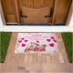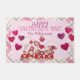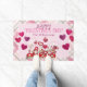 Ce mignon tapis de porte de Saint-Valentin personnalisé présente une aquarelle rose et rouge. Une illustration d'un petit train de Saint-Valentin avec des gnomes est illustrée en bas. Plusieurs coeurs mettent en avant l'image. La frontière est dotée d'un motif rose clair.