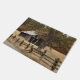 Une photographie d'une scène de pays comportant une grange patinée et une barrière de rail cassée.
