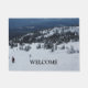 Une scène de neige accueillante en hiver sur une montagne aux arbres enneigés. Le message "Bienvenue" peut être modifié à votre guise.