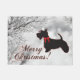 Scottish Terrier a décrit en rouge avec le texte "Joyeux Noël !" et un arrière - plan d'hiver.